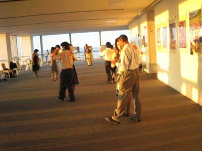 2007年8月地上31階のミロンガ (第2回)朱鷺メッセ・展望室(地上31階)からの贅沢な夜景を楽しみながら、エレガントな サロン・スタイルのタンゴを踊ってみませんか? お一人で、またはご友人と一緒に、 お気に入りの洋服でドレスアップしてご参加ください。新潟市内外から、30名以上の方々がご参加くださいました。タンゴ新潟・メンバーのほか、 群馬県のタンゴ・サークルの方々、社交ダンスをされている方々、ダンス未経験の方々など、 参加者の顔ぶれは多岐に渡りました。タンゴを通じて、様々な人たちと交流することができる 素晴らしさを、これからも伝えていきたいと思います。今冬には『地上31階のミロンガ』(第3回) を開催する予定ですので、お楽しみに。……